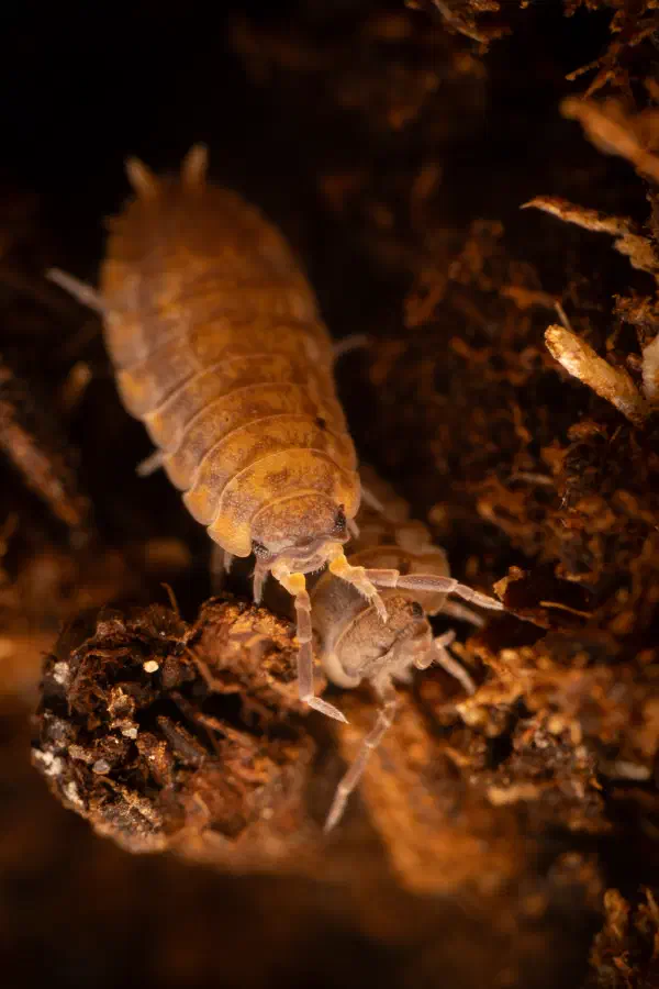 But it’s not just the weather that’s getting to me today. It’s the life as a rough woodlouse. People often think that we have it easy just because we are small and can hide in dark corners. But they know nothing of the challenges that a 26-legged life entails. Even getting up in the morning is a feat of strength. Seven pairs of walking legs need to be coordinated, and that’s before I even think about my five pairs of leaf legs. And then there are my two uropods, those strange little appendages that always seem to get in the way. Sometimes I wonder if life would be easier if I had fewer legs. But then I remember that each of my extremities has an important function. Even without my uropods, nothing would be possible because they help me to keep my balance and sense danger. Nevertheless, it’s a constant back and forth and I always have to make sure I don’t stumble.