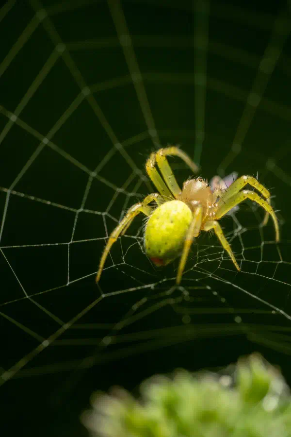 Ich bin kaum sechs Millimeter groß, mit einem glänzend gelblich-grünen Hinterleib, der mit dunklen Vertiefungen geziert ist, und führe ein bescheidenes, aber glückliches Leben. Meine Tage verbringe ich in meinem Netz, das ich geschickt in Bäumen und Sträuchern und meist aus 20 bis 30 Radien angelegt habe.