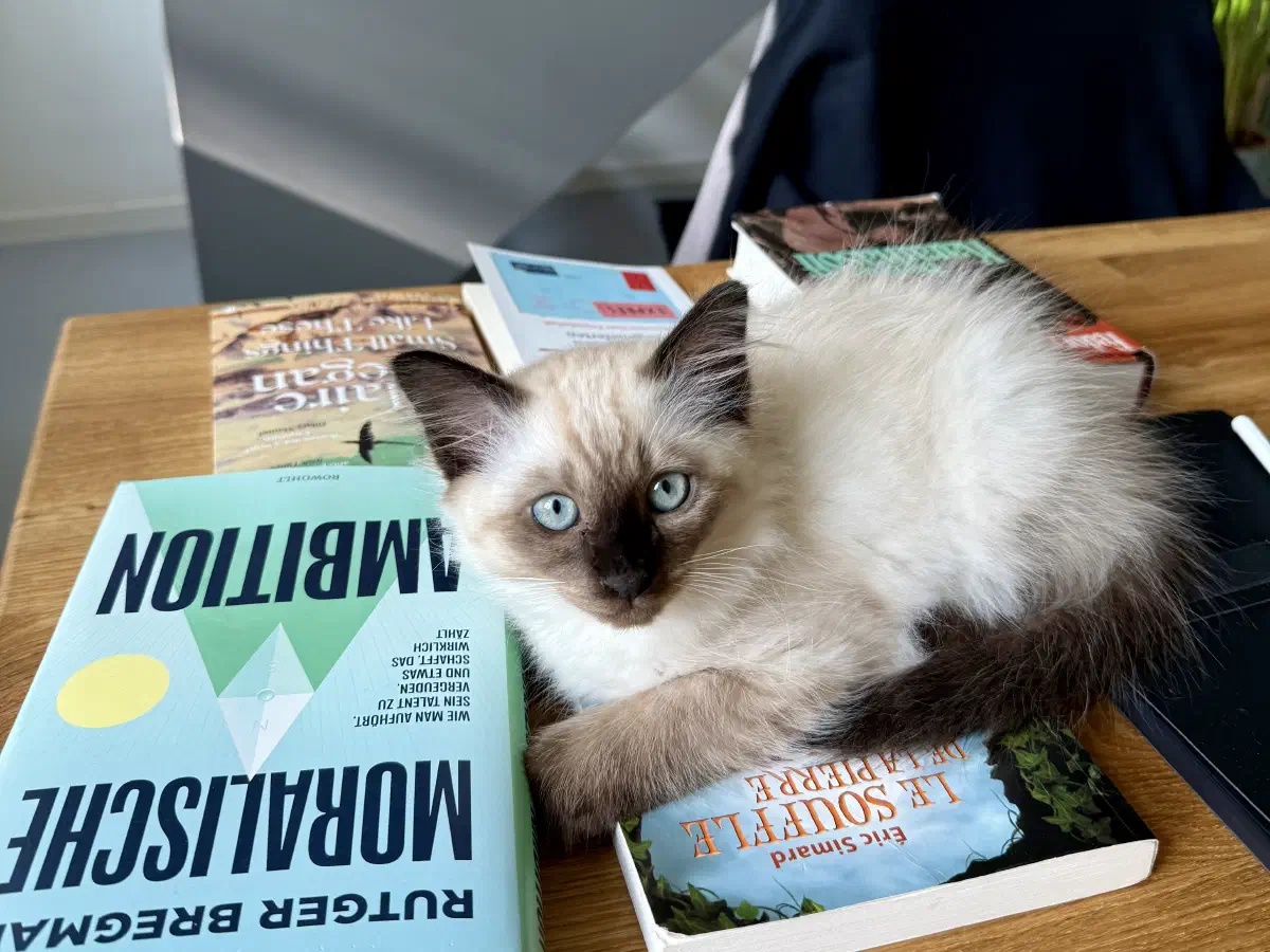 „Du lebst im Gefängnis“, sagt die Glückskatze von draußen. „Trikolore“ heute, weil die Nachbarin sie gerade so genannt hat, kurz nachdem sie deren Kater Brutus wieder mal die Meinung gegeigt hatte. Satori, zur Hälfte Heilige Birma, zur anderen Hälfte niemand-weiß-es-so-genau, mit seinen eisblauen Augen, schnaubt verächtlich. „Ich lebe in Sicherheit. Das ist ein Unterschied.“