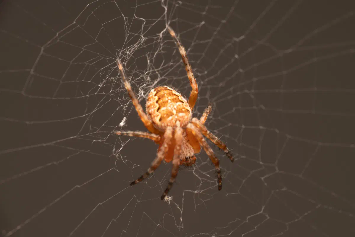 Ein kleiner Schritt für eine Spinne, aber ein großer Sprung für eine Gartenkreuzspinne ohne Garten.
