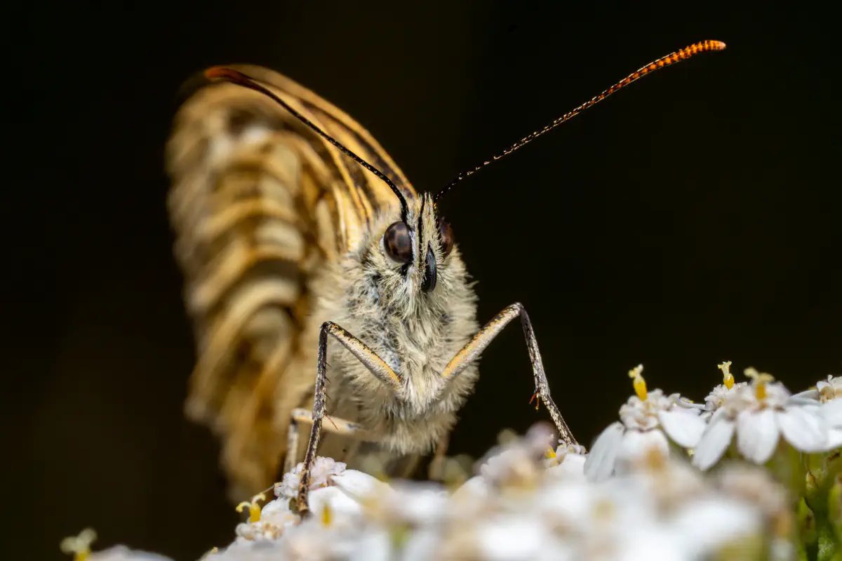 Wir haben schon oft über das Schachbrett berichtet. Gemeint ist hier nicht das Brettspiel, bei dem Reisbauern zu Helden werden, sondern der Schmetterling mit dem lateinischen Namen, der klingt wie ein Hogwarts-Zauberspruch: Melanargia galathea. Mit einer Flügelspannweite von 37 bis 52 Millimetern flattert dieser Künstler der Tarnung nicht nur durch Europa, sondern auch durch den Norden Afrikas sowie Teile Asiens.